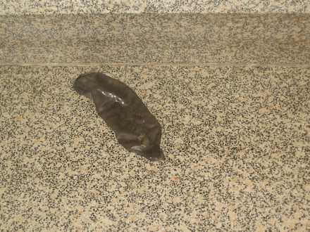 Kondom im Treppenflur
