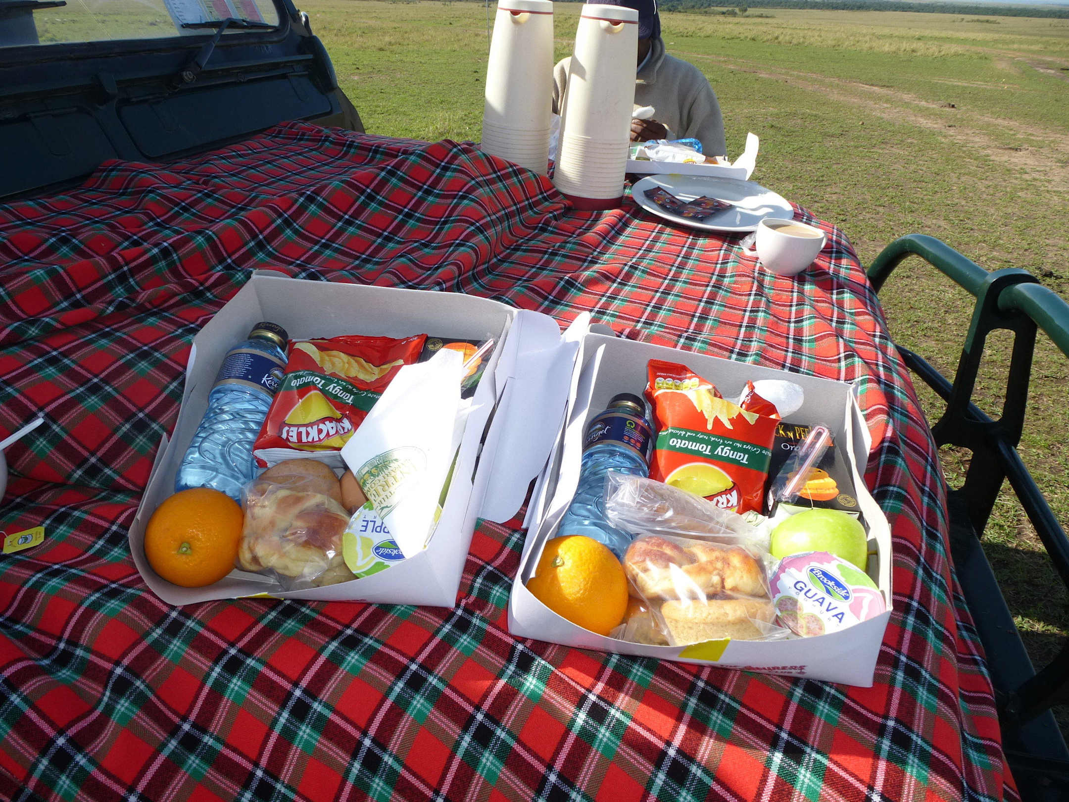 Frühstück auf der Motorhaube unseres Jeeps