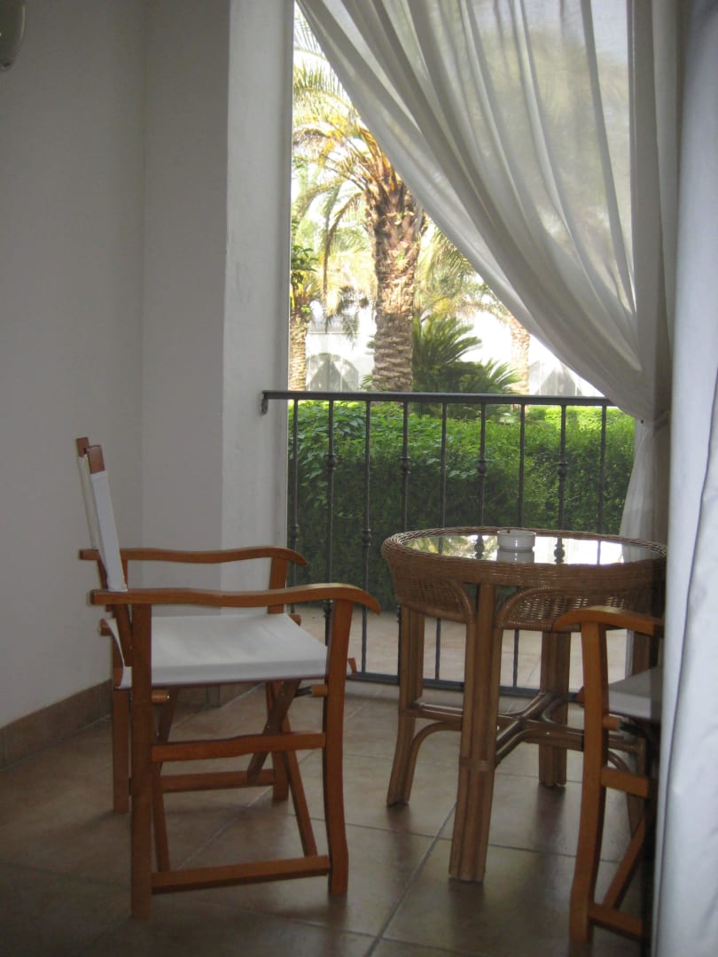 eine kleine integrierte Terrasse zum Innenhof - geschützt durch ein Fliegenschutzgitter - aber morgens war es immerlaut, wenn die Vögel anfingen zu pfeifen ...