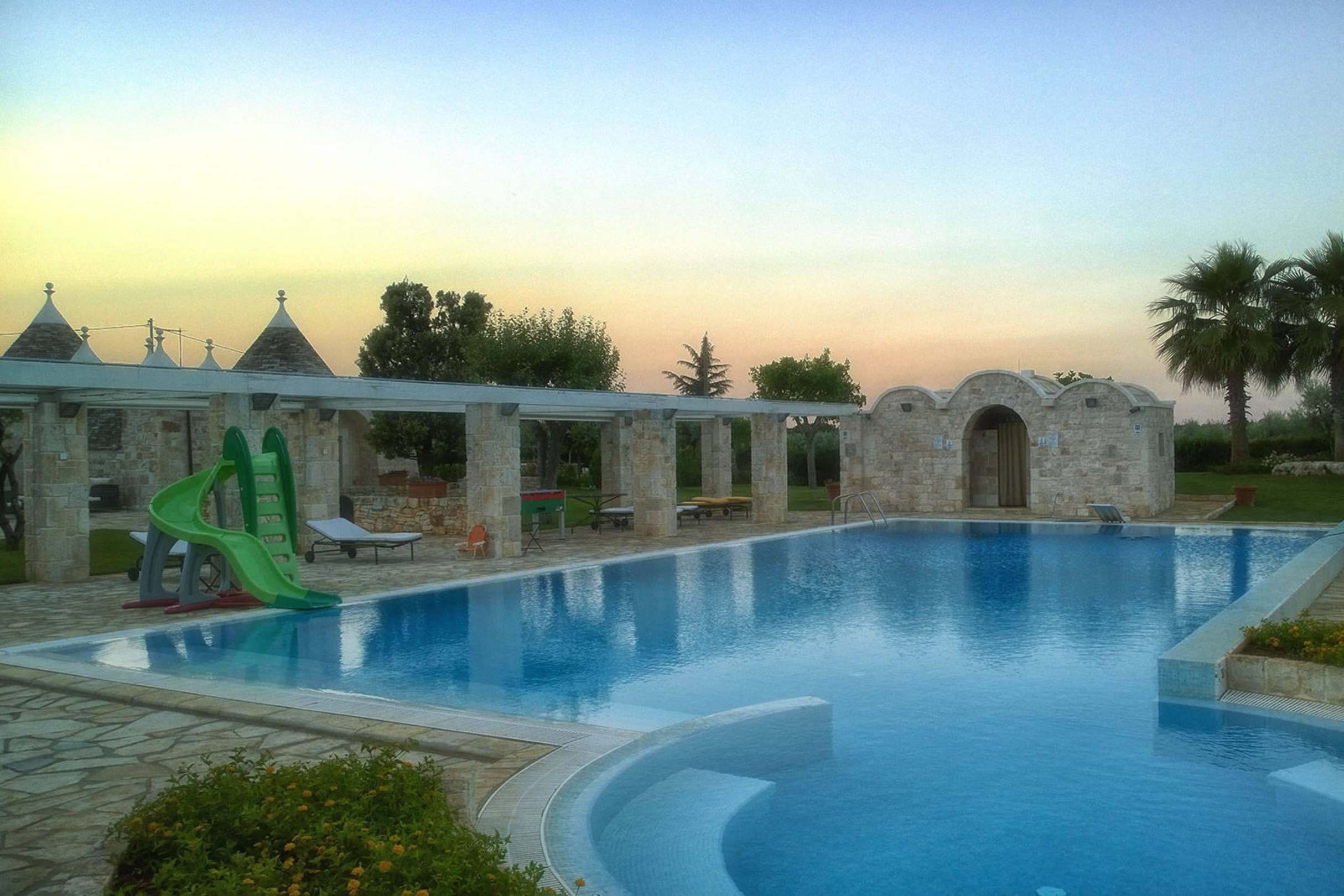 Our outdoor swimming pool at sunset