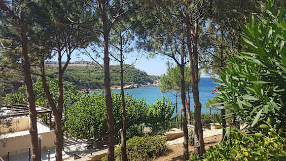 Blick von den Bungalows zum Meer