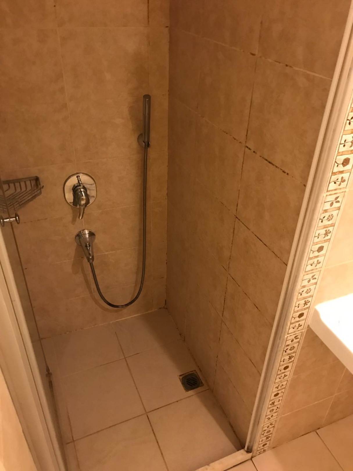 ZimmerVerschimmelte fugen und das Wasser lief nicht sehr schlecht ab das beil duschen das Wasser vom Bad ins Zimmer lief