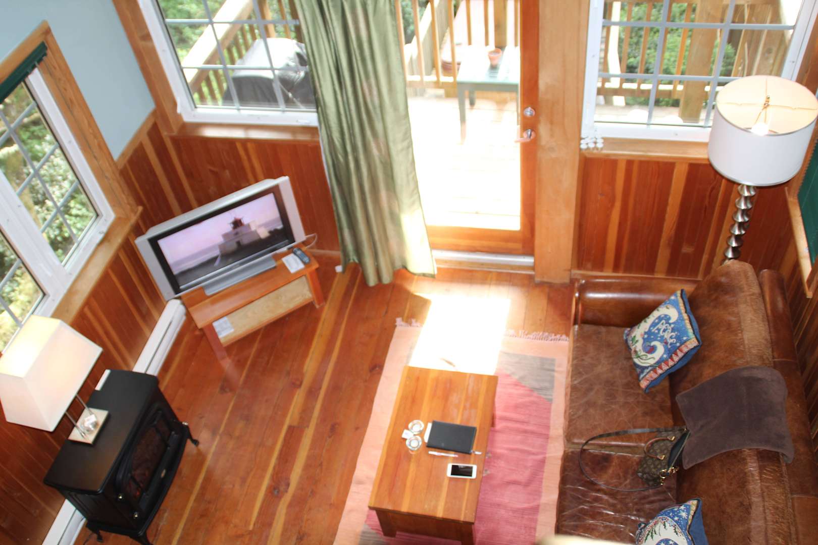 Wohnzimmer mit Balkon und Gas Grill
