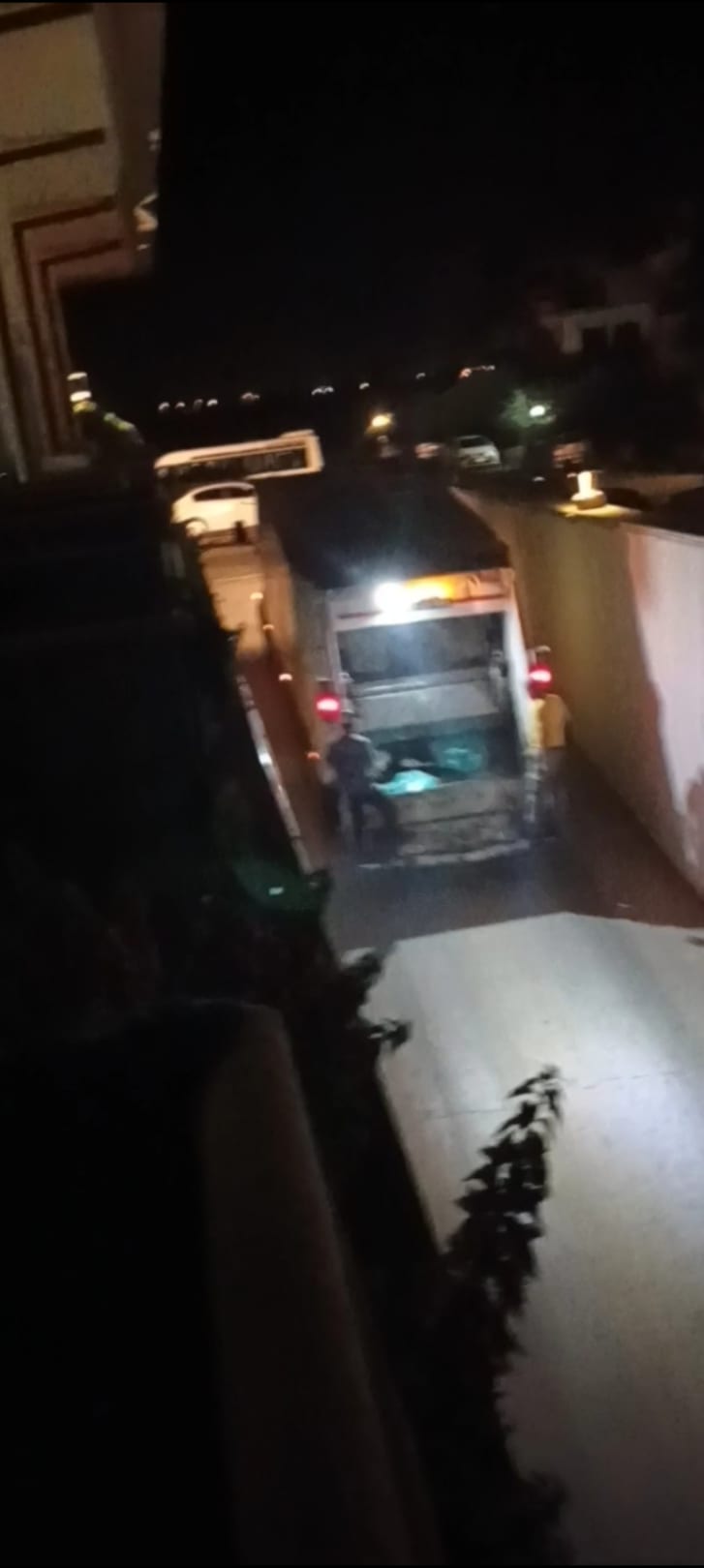 An Schlaf war nicht zu denken. Die Müllabfuhr kam öfters in der Nacht und hat sich hupend angekündigt. Hat dann den Motor für die Hydraulik aufgedreht und blieb ca 25 min. Das Bild entstand um 3.38Uhr vom Balkon eines 5 Sterne Hotels