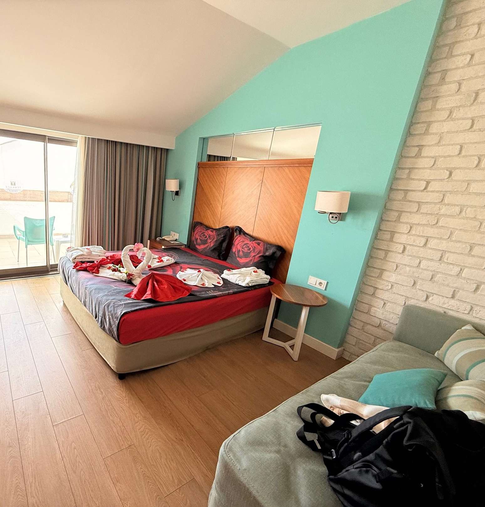 Honeymoon Dekoration auf dem Bett.
