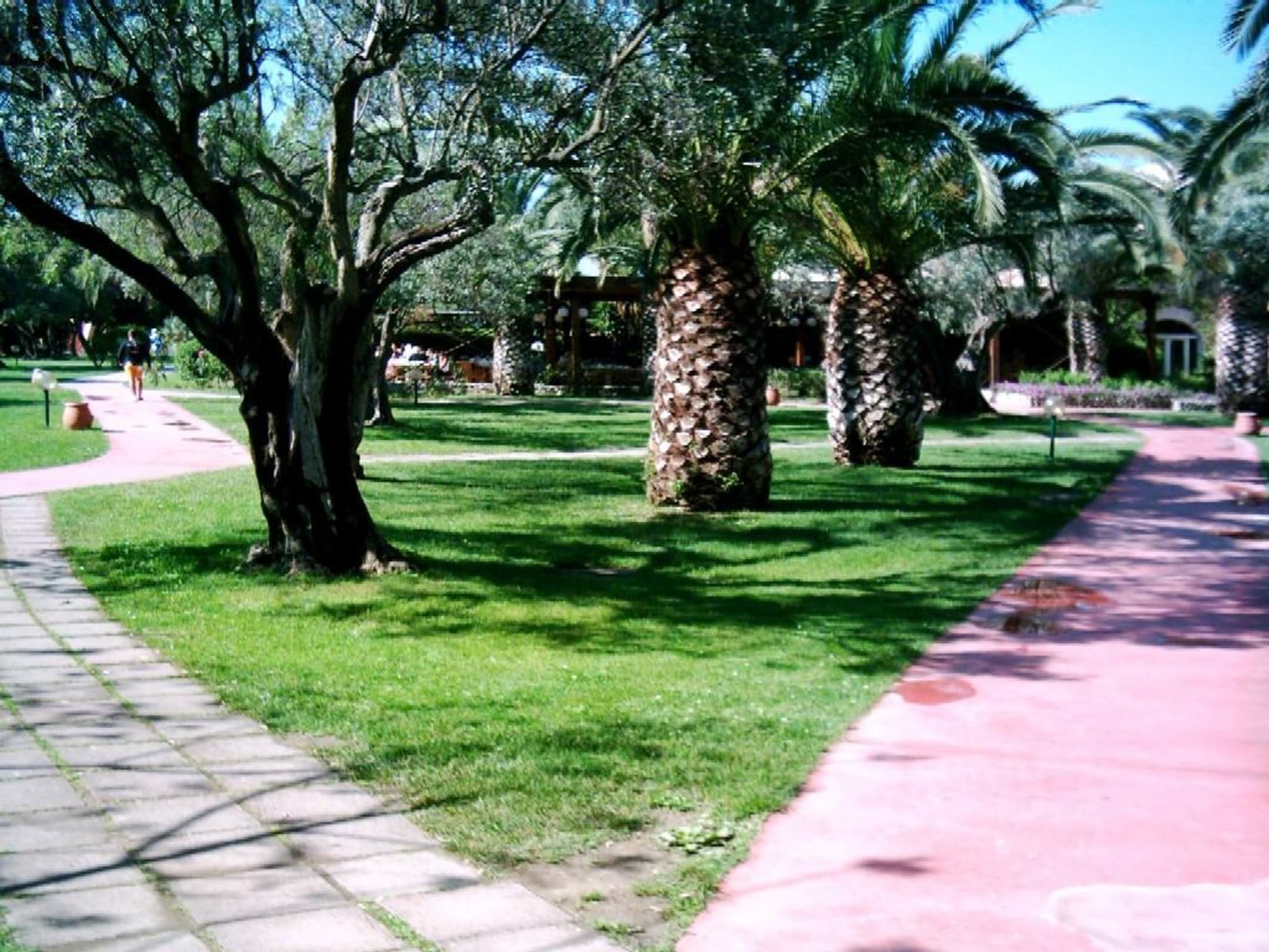 Blick durch die Parkanlage auf das Restaurant