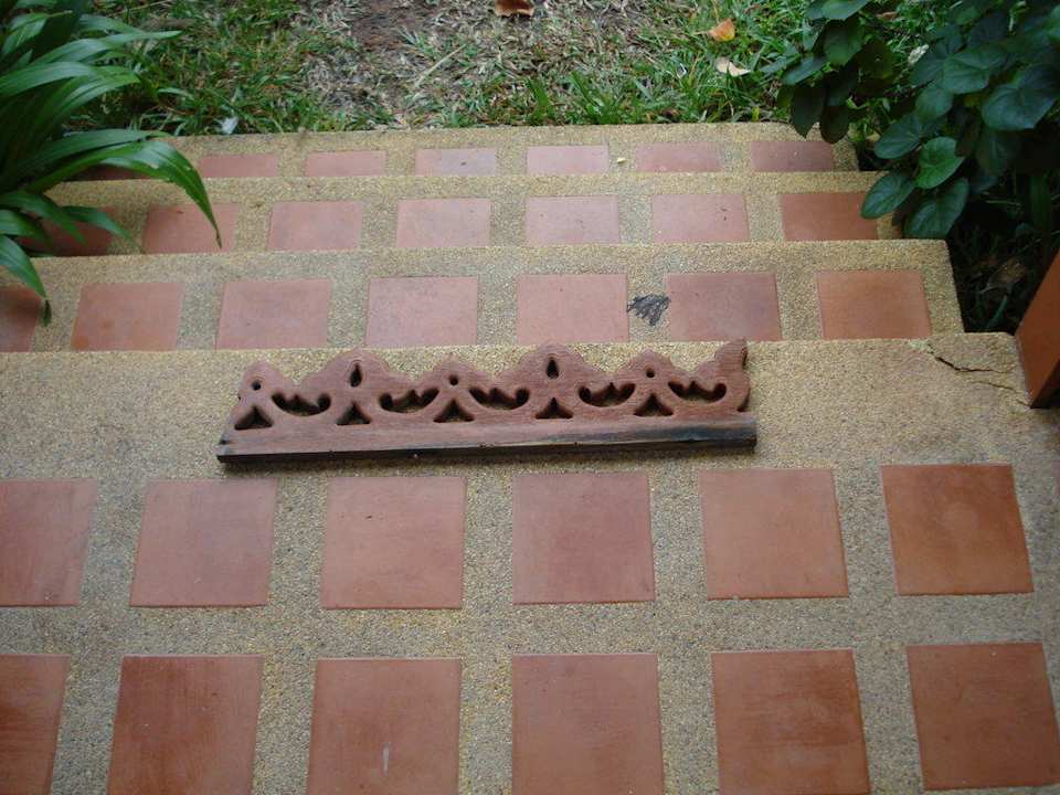 Dieses Teil haben wir im Dreck zwischen "Villa" und Büschen gefunden und es so hingelegt, daß es gerichtet werden konnte. Bis zum Abreisetag fehlte es immer noch.