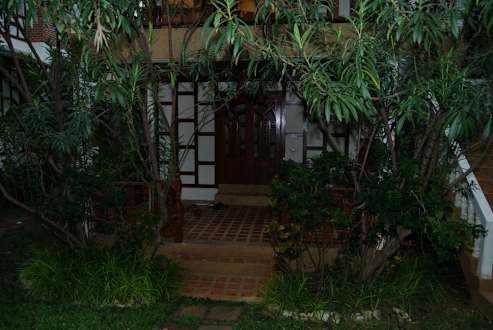 So sieht der Zugang zum Zimmer aus. Sehr angenehm, da man bei Regen draußen sitzen kann.
