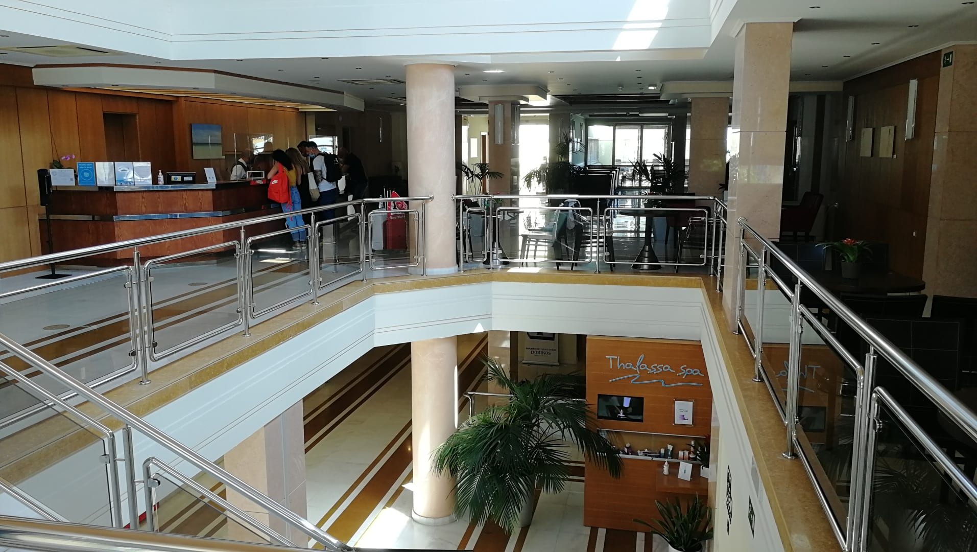 Links sieht man die Lobby und im Untergeschoss befindet sich der Wellnessbereich.