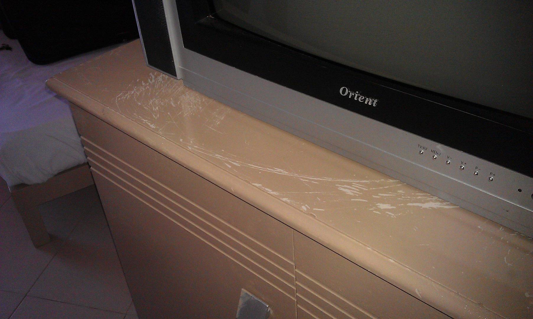 Zerkratzter TV-Tisch