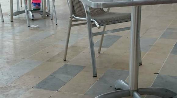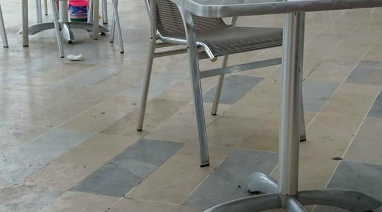 Dreck am Boden, Tischen und Stühlen