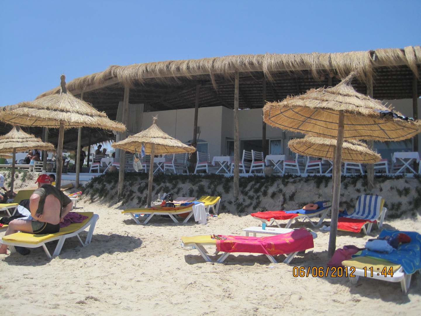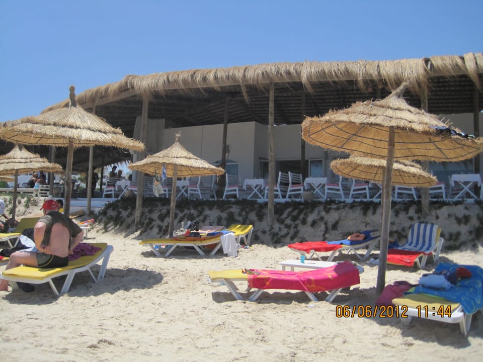 Am Strand - im Hintergrund die Strandbar