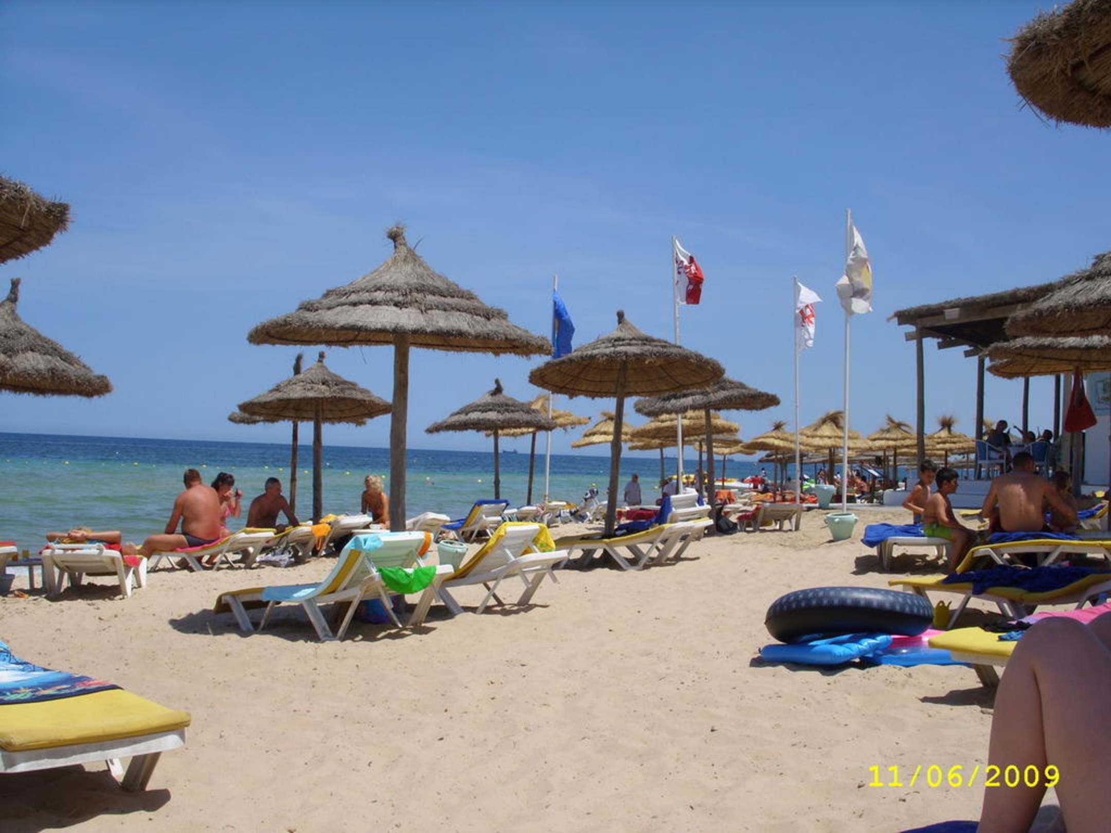czysta plaza na ktorej jest dodatkowy bar z przekaskami i napojami.
