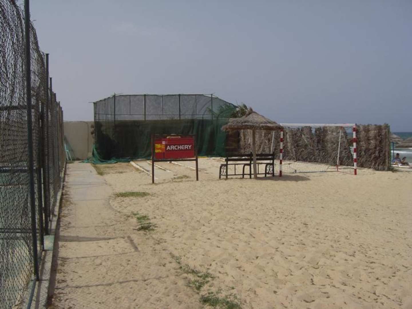 Fußball und Bogenschießen am Strand