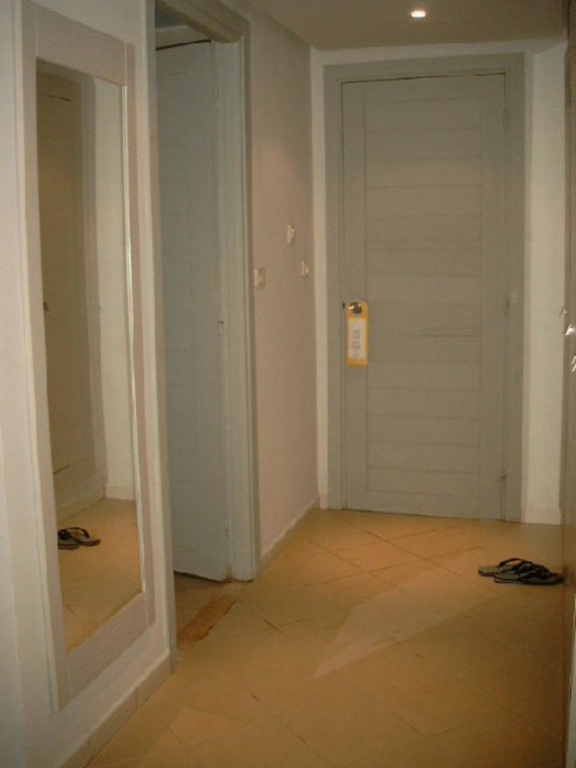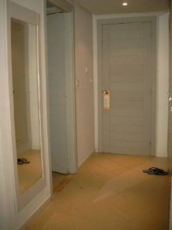 links großer Ankleidespiegel, Tür zum Bad & geradehin Ausgangstür