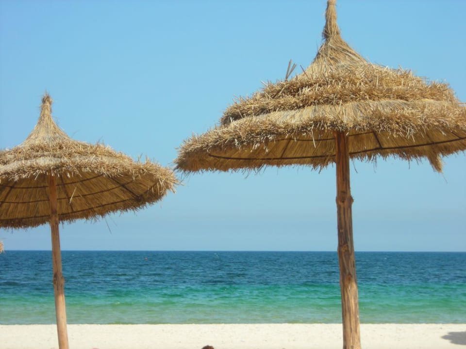 Liegestühle mit netten Sonnenschirmen
