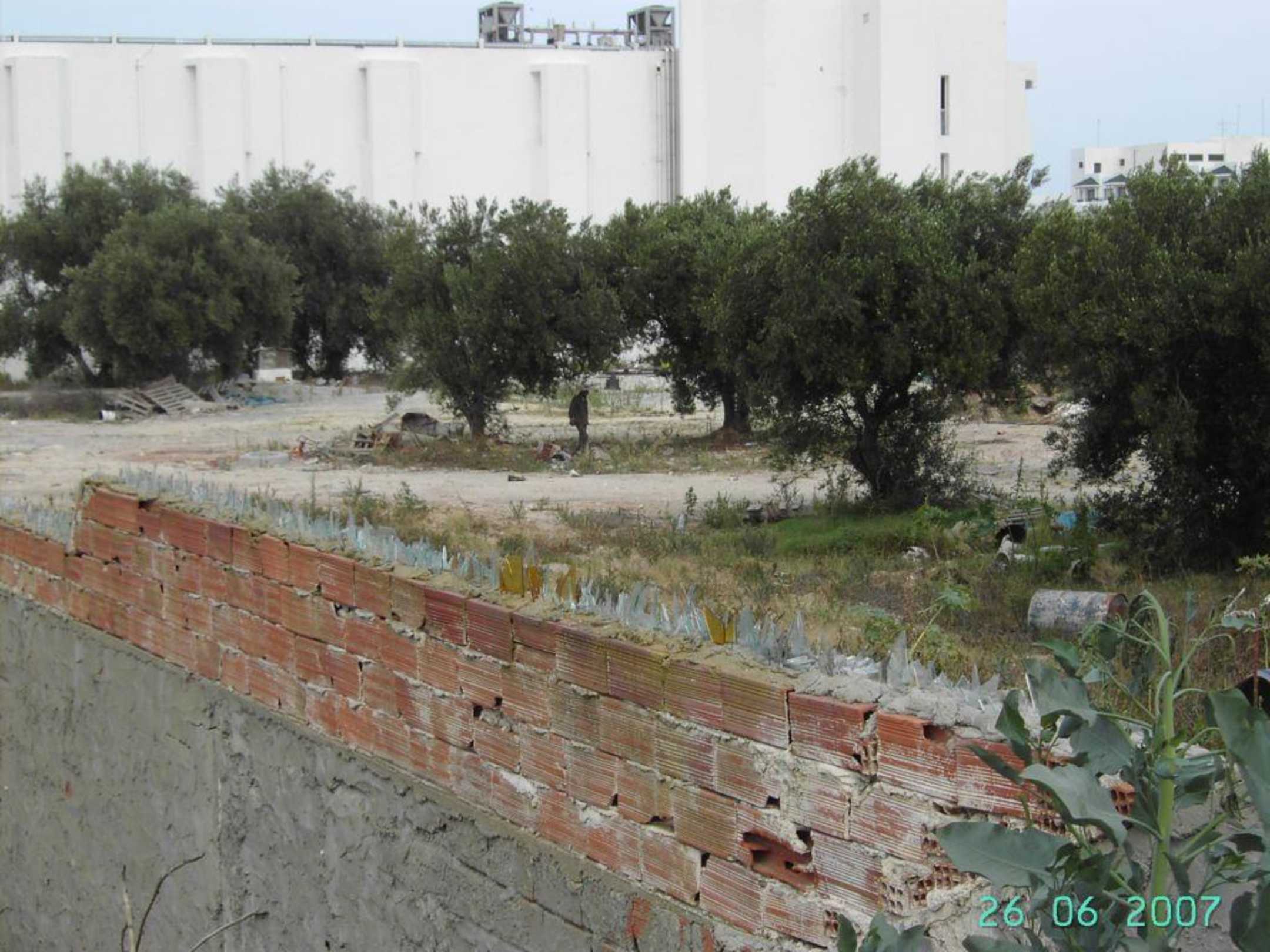 Die Glasscherben in der Mauer sollen vermutlich ein Ersatz für Stacheldraht sein. Diesen Ausblick bekommt man, wenn man sich vor die Tore des Clubs wagt....