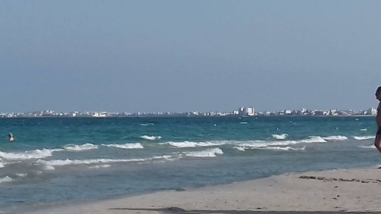 Hotelstrand mir Blick auf die Bucht von Mahdia