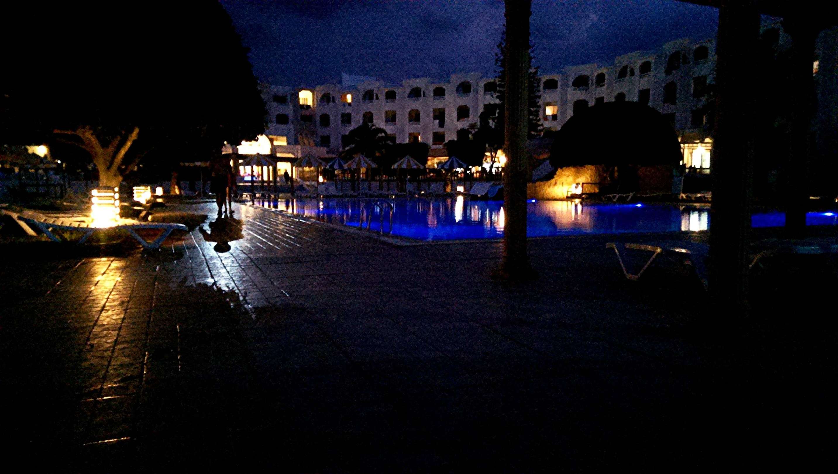 Poolanlage bei NachtDer Pool blinkt bei Nacht in verschiedenen Farben.