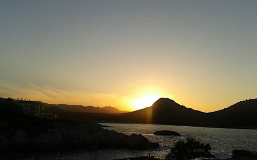 Sonnenuntergang über der Cala Aguya von der Terrasse