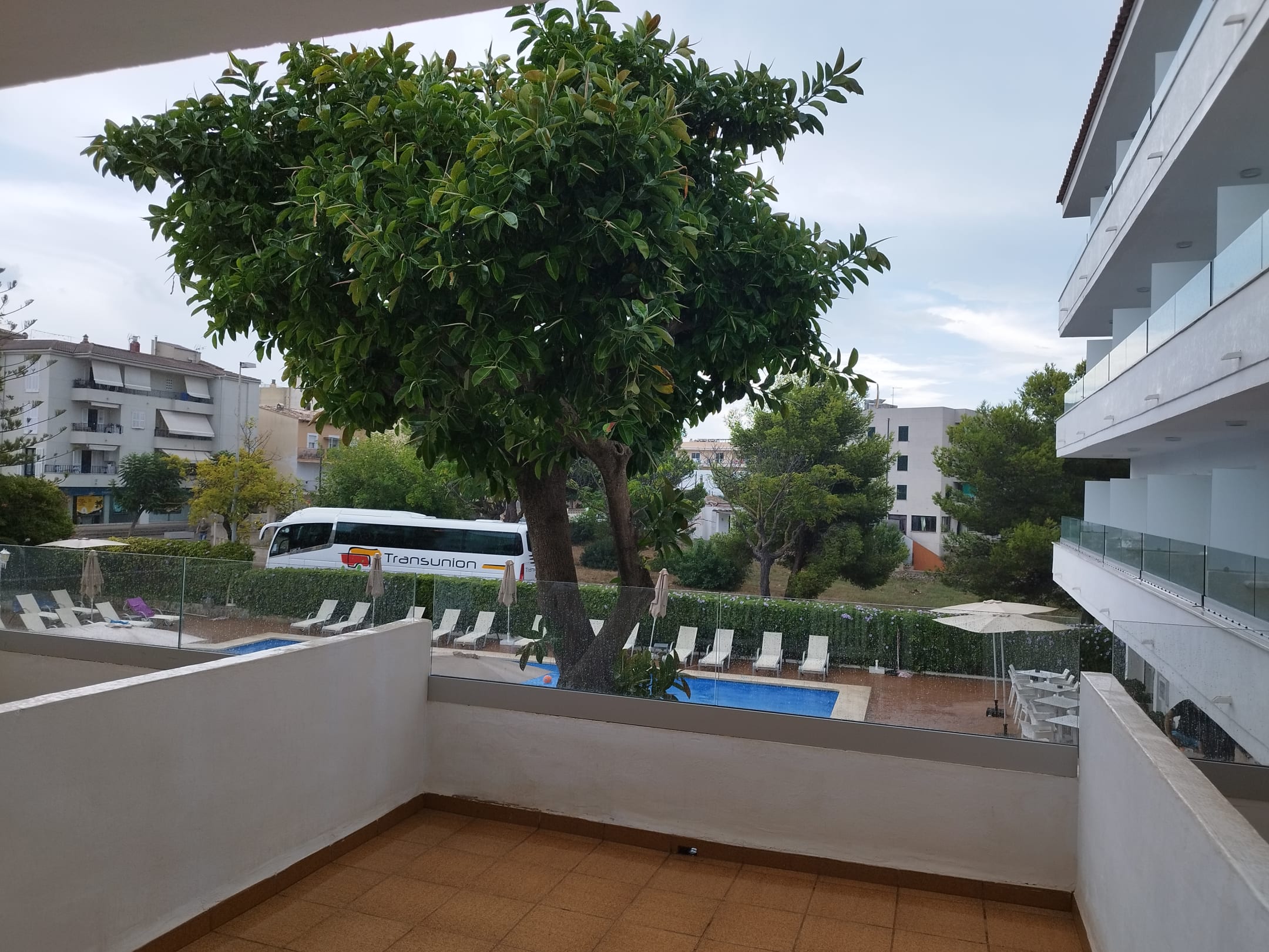 Ausblick von Zimmer im 1. OG Richtung Pool und Straße