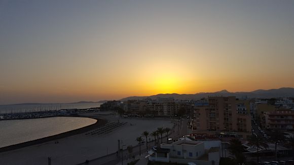 Sonnenuntergang vom El Cid Richtung Seglerhafen / Tramuntana Gebirge! Ein Traum!