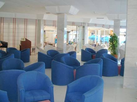 Mallorca - Can Picafort - Appartmenthaus Gran Bahia - Eingangshalle - hinten links sieht man den Flipper und das Internet-Terminal