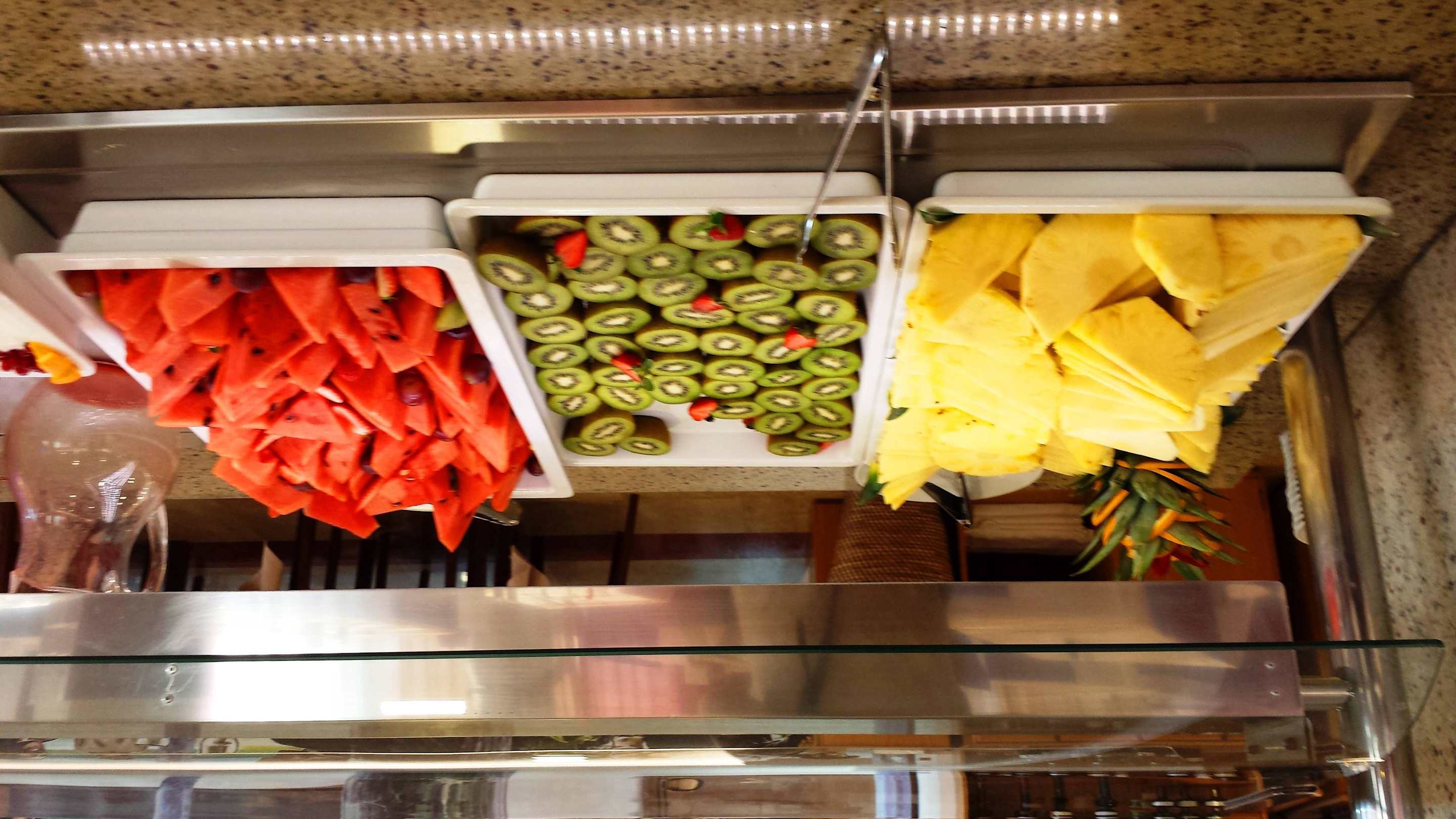 Es gab immer süße Melonen und Honigmelonen, Ananas, frische Erdbeeren, die man in einen Schokoladenbrunnen tauchen konnte...superlecker!