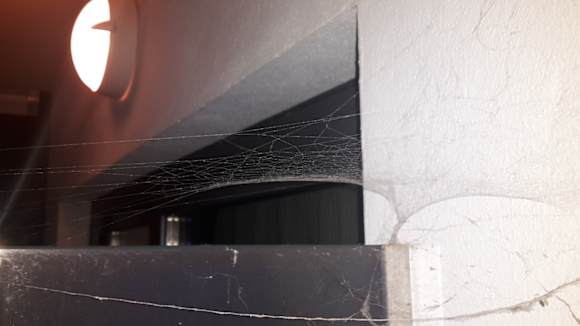 Spinnengewebe auf dem Balkon