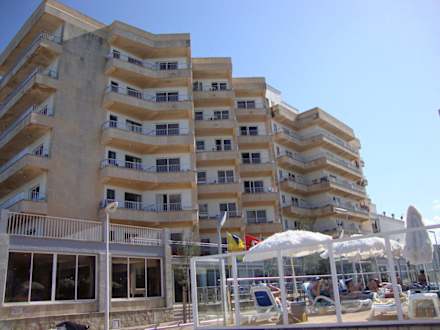 Hotel Gran-Bahia von der Promenade seitlich gesehen.Rechts Poolanlage.