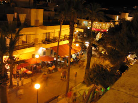 Abendlicher Blick von Balkon Ausblick von Zimmer 327 auf das abendliche, lebhafte Treiben auf der Straße.