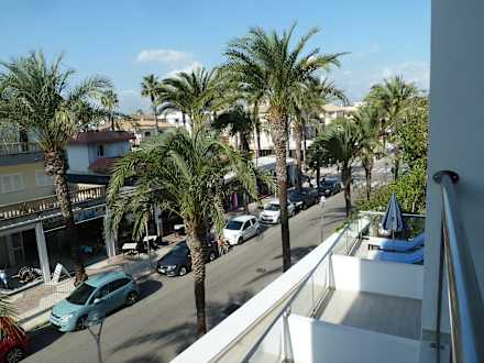 Blick vom Balkon auf die Strasse, genügend Parkplätze vorm Haus