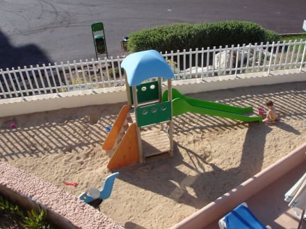 Kinder Spielplatz mit Rutsche und Sandkasten