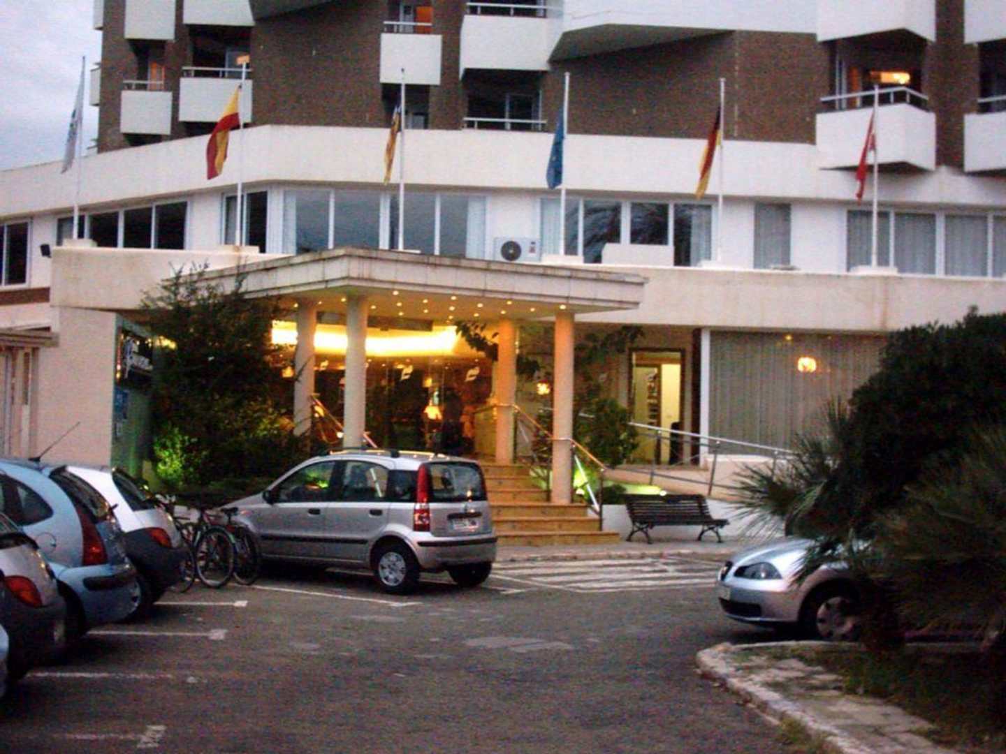 Hoteleingang am Abend.