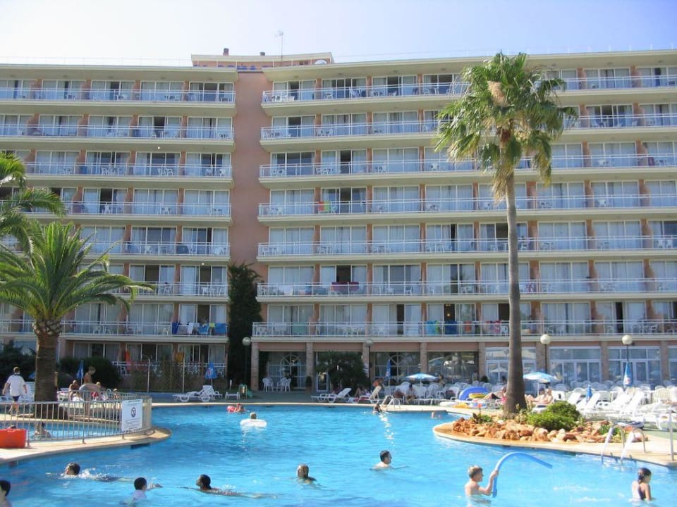 das Hotelgebäude mit dem Hotelpool