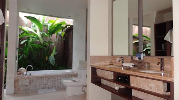 Eines der Badezimmer in unserer Villa mit Badewann