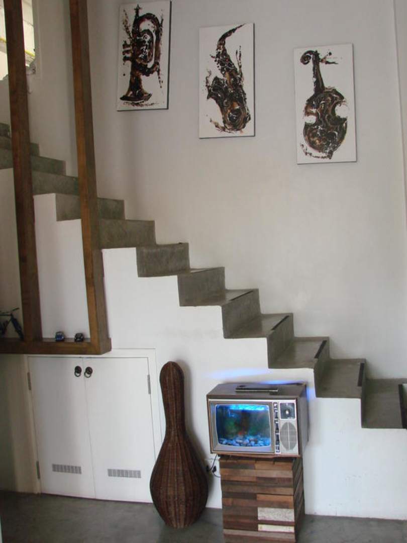 Лестница наверх, в интерьере много джазово-музыкальных мотивов