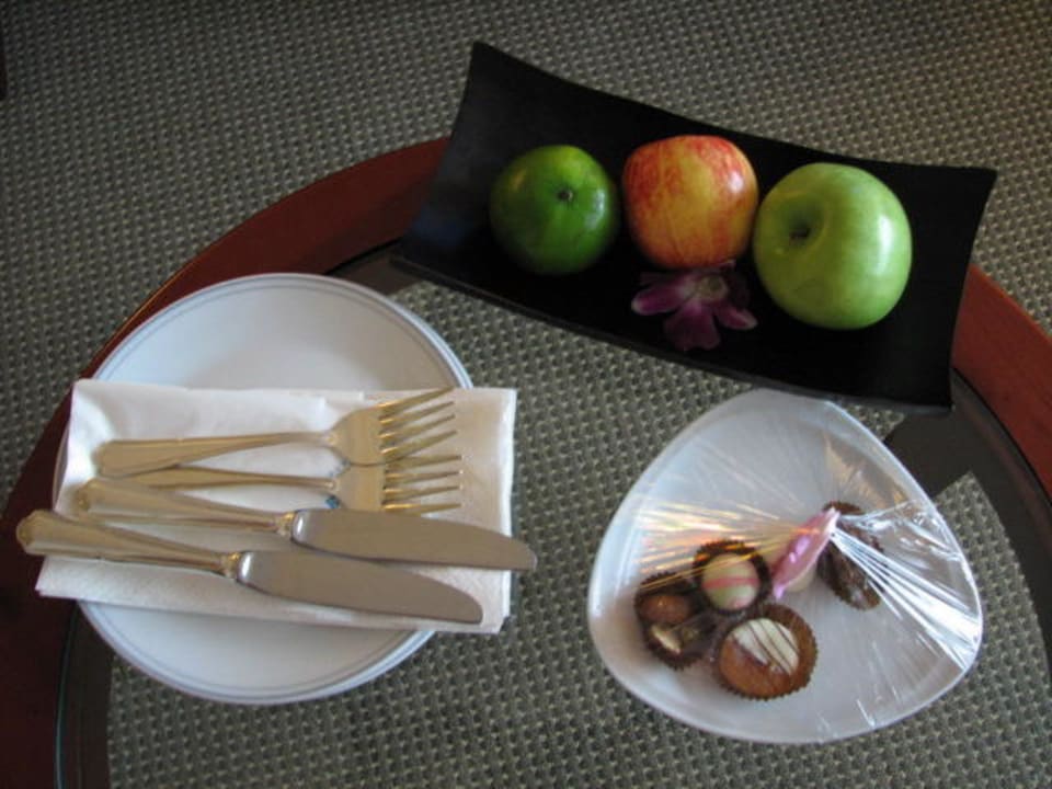 Obst und Süßigkeiten als Begrüßung.