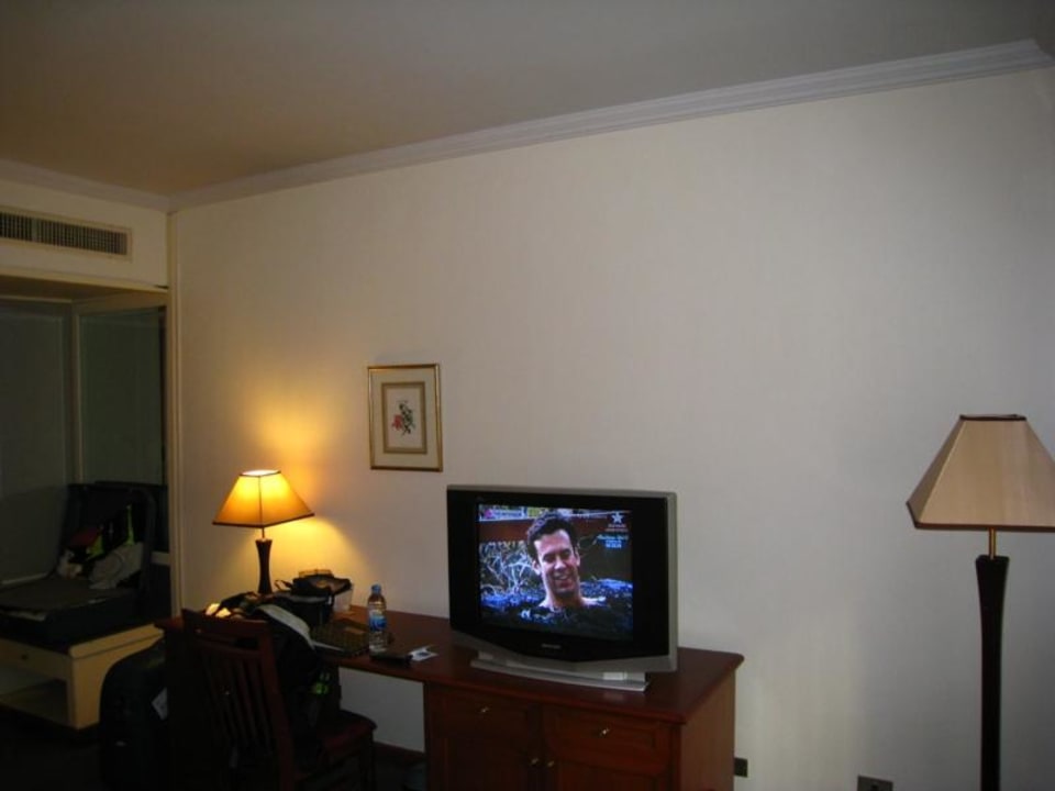 Blick auf den Ferseher und den Schreibtisch