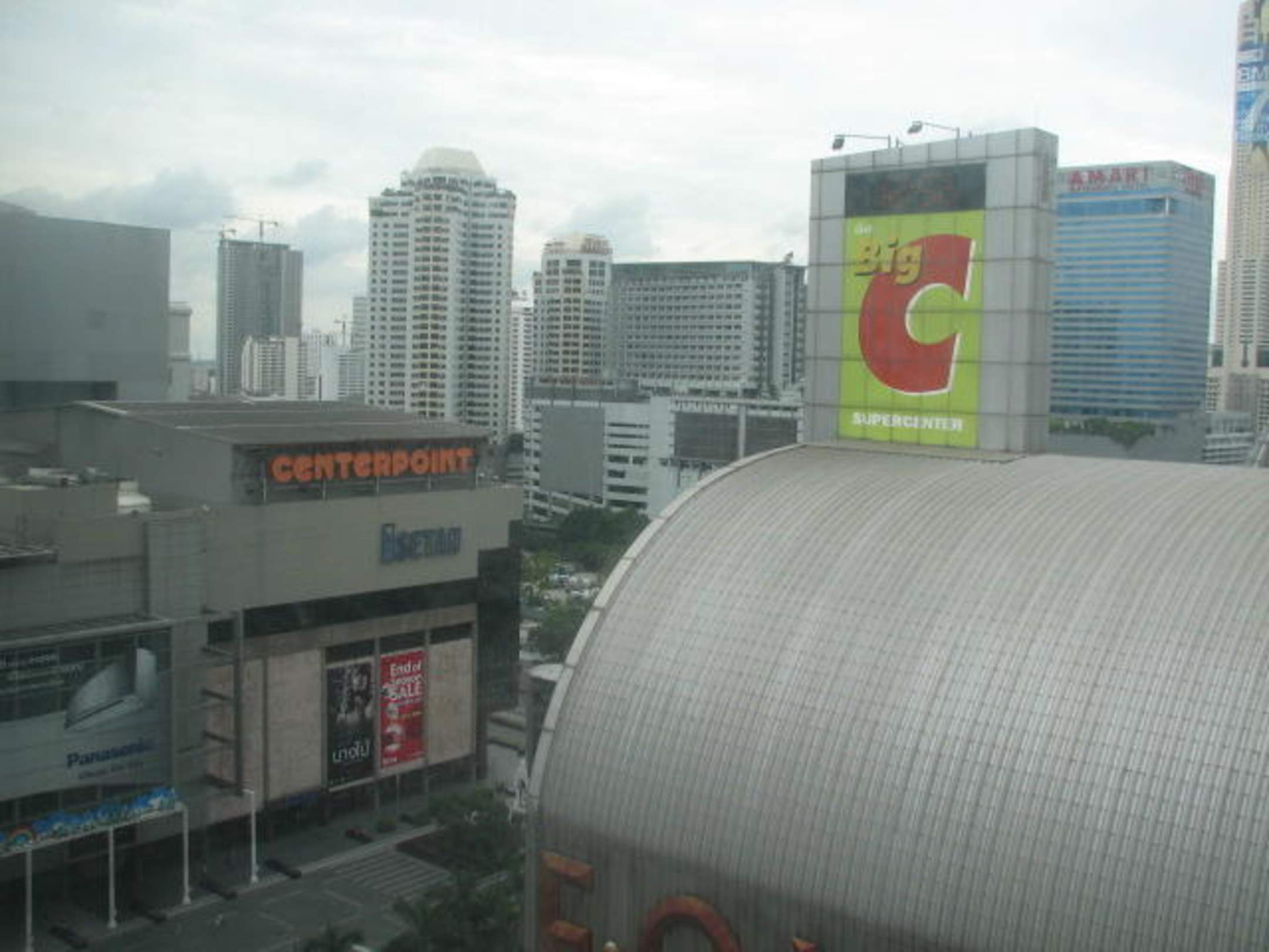 Rechts ein Kaufhaus [BIG C] und gegenüber ein Einkaufszentrum [CENTRAL WORLD TRADE].