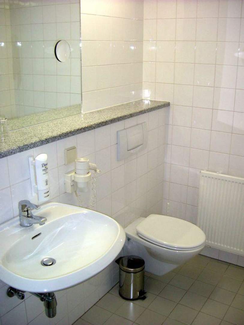 Golden Tulip Art Hotel WienWaschbecken - Toilette - kleiner Kosmetikspiegel im Doppelzimmer Nr. 513