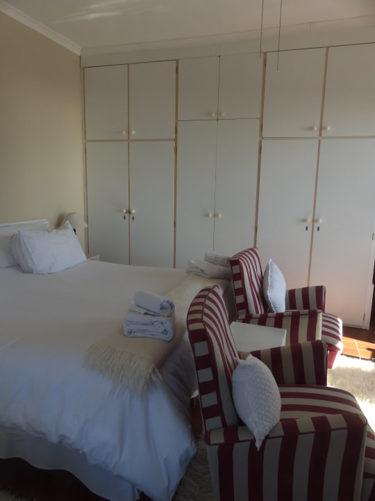 Zimmer im EG. Der mittlere Schrankteil ist der Durchgang zum Bad.