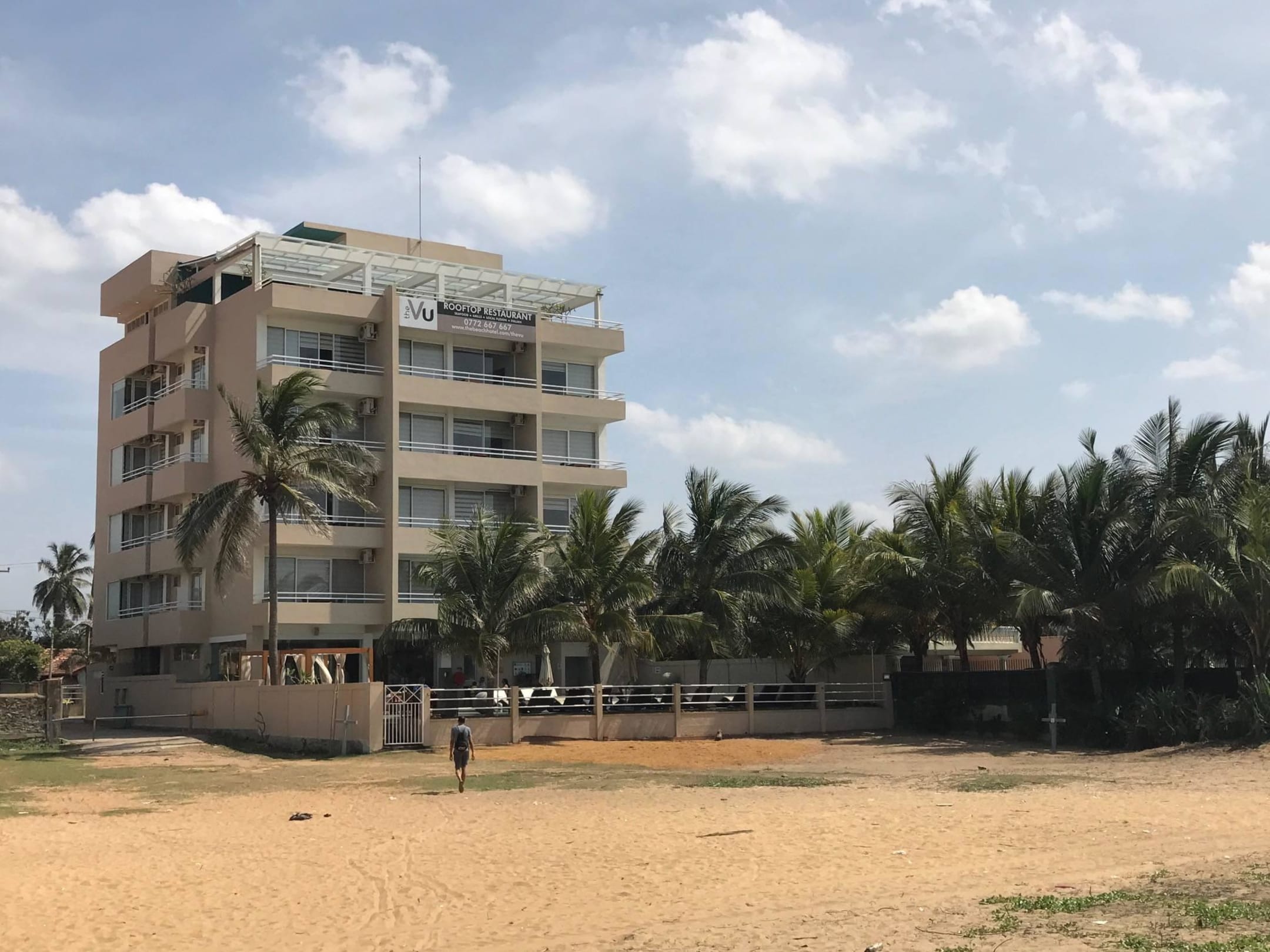 Blick auf Hotel vom Strand