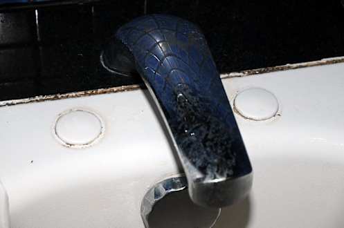 Abdeckkappen der alten Armatur aufgelegt, rostig