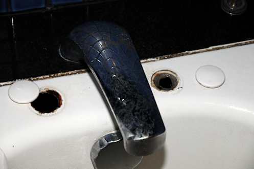 Abdeckkappen der alten Armatur abnehmbar, Rost