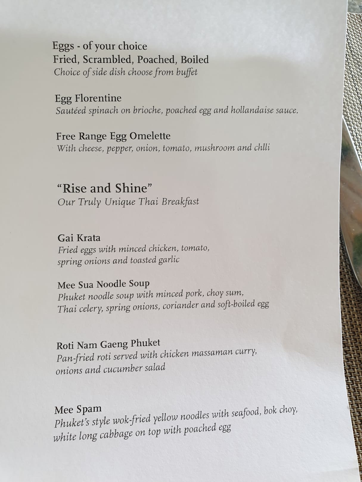a la carte- Gerichte zum Frühstück