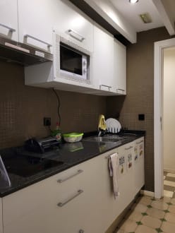 Kleinere Küche von der hinderen Wand aus