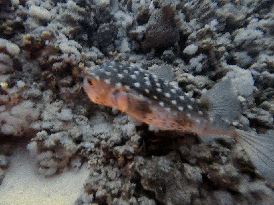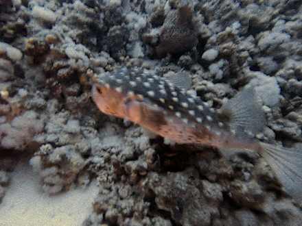 Igelfisch beim Nachttauchgang entdeckt
