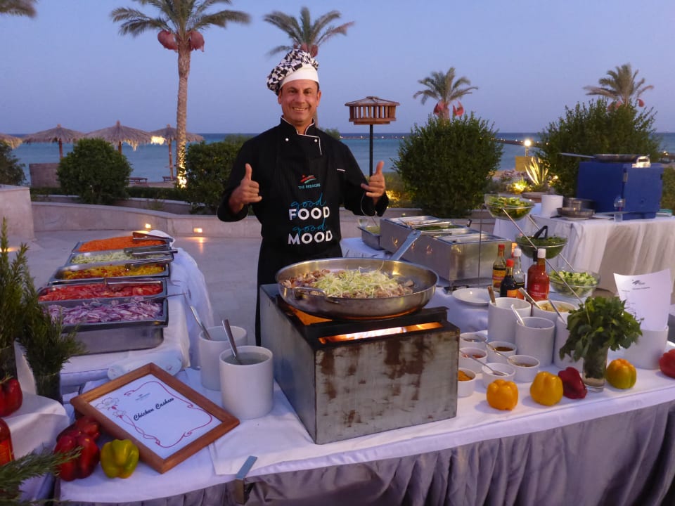 Hier kocht der Manager selbst, Stefan an der Pfanne.
