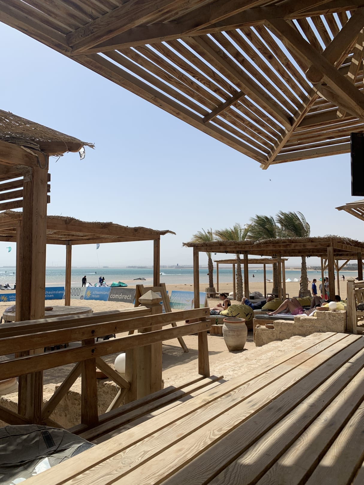 AusblickStrand am Kitebeach "7Bft", Volleyball, Slackline usw. Hier gibt es alles was das Kiterherz höher schlagen lässt